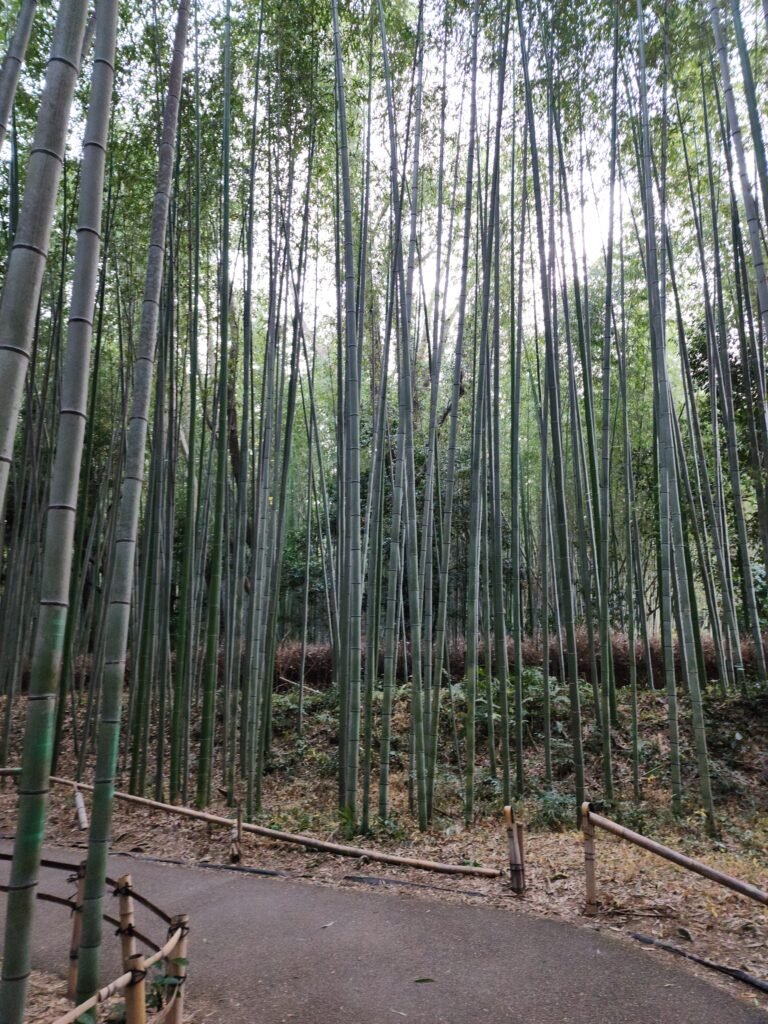Next on our list, we had to stop at the iconic Arashiyama District, located on the western outskirts of Kyoto, where it is home to the natural beauty and serene ambiance of the Bamboo Grove District. The towering bamboo stalks create a mesmerizing pathway that feels almost otherworldly. The bamboo stalks reminded us of olden movie shows where some train to get stronger. The overall trail didn’t take us too long but it was so nice to see the tall stalks of healthy bamboo in the forest.