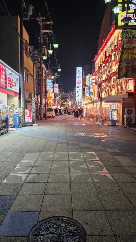 Our hotel was close to Shinsekai and I can say it really felt like a night market vibe. 2 restaurants that got as addicted were a small sushi restaurant and a small Takoyaki shop located directly in Shinsekai. At night, the market lights up and it is memorable to see the iconic Tsutenkaku Tower, a symbol of Osaka’s vibrant spirit.