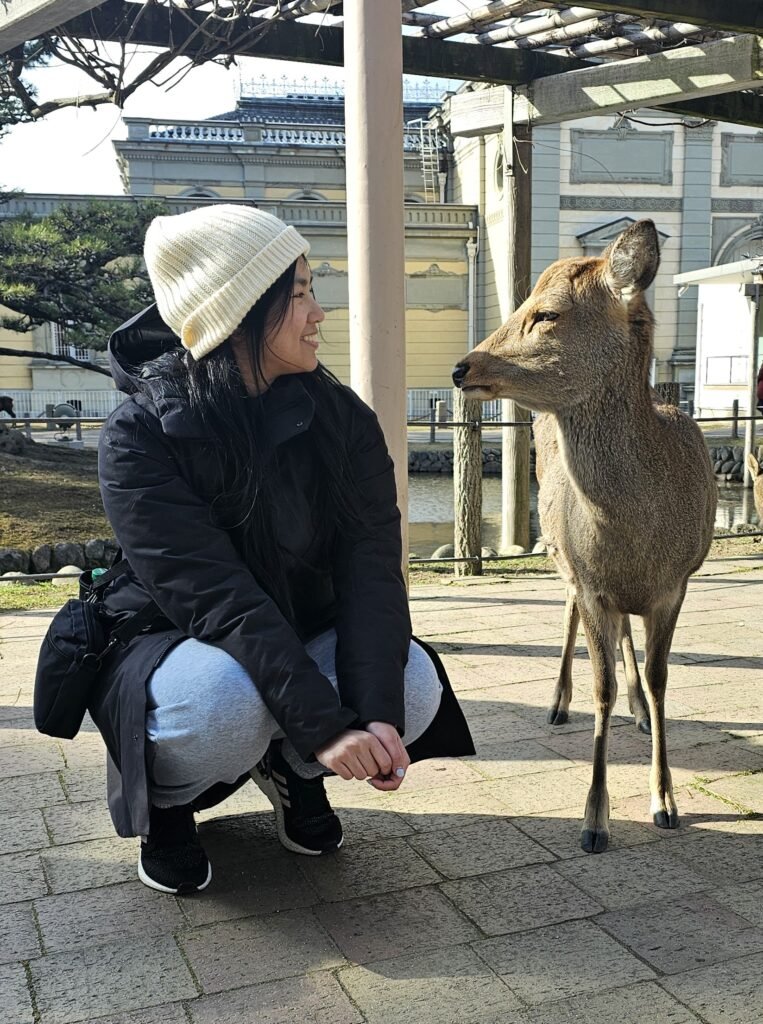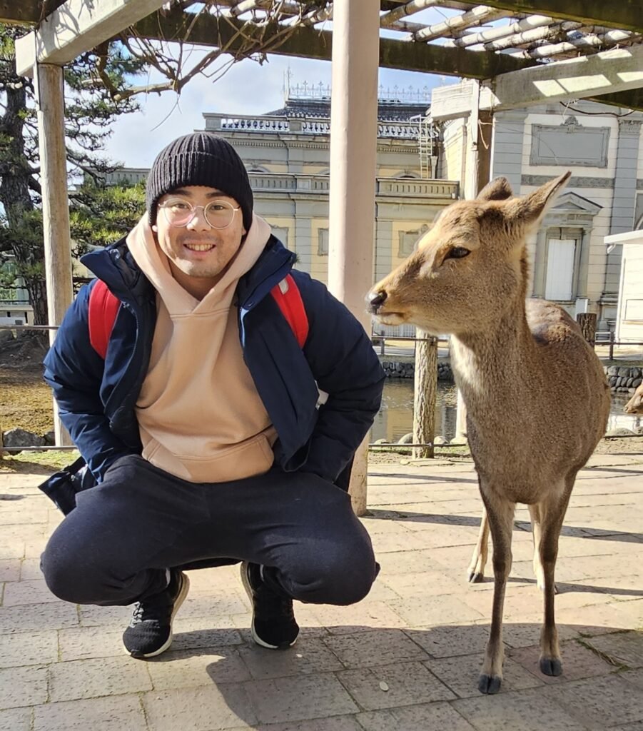 A 50-minute transit ride from Shinsekai Market, Nara Park is home to hundreds of freely roaming sika deer. When we arrived, we had purchased deer crackers from local vendors and fed the most adorable deer. Most of the deer were bowing every time we fed the crackers. Some of the male deer were a bit more aggressive and Colin got headbutted in the butt because he didn’t feed fast enough. A local came up to give us some nuts to feed the deer instead which was so sweet. Whether you’re a nature lover, or seeking tranquillity, Nara Deer Park promises a serene and memorable escape.