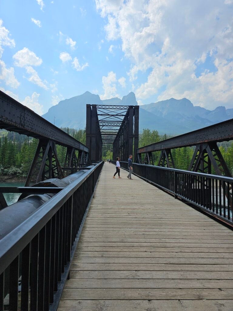 The Canmore Engine Bridge offers a touch of rustic history in a beautiful mountain setting. It’s a charming spot, perfect for a peaceful walk with scenic views.