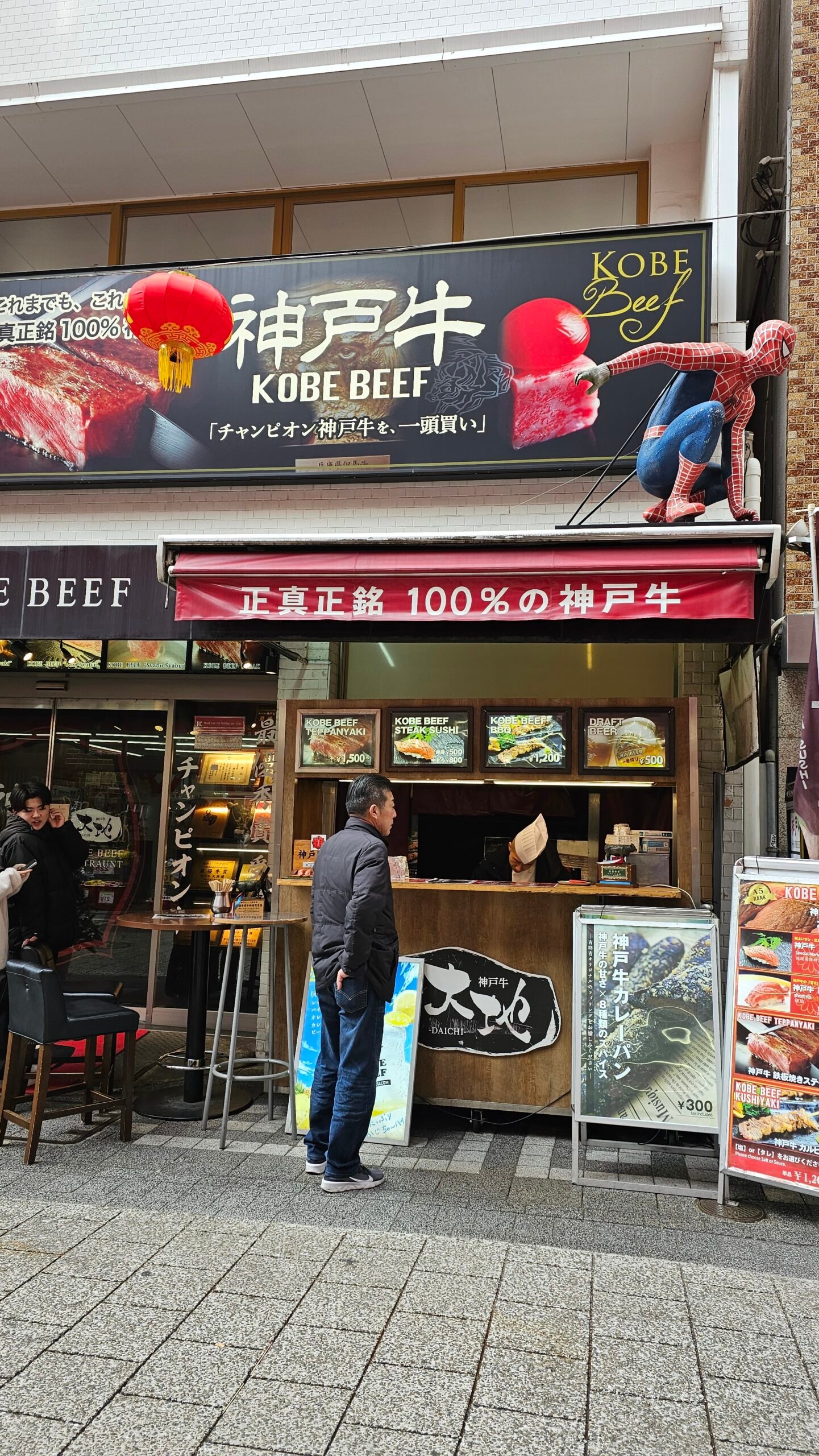 Kobe’s Chinatown District offered a feast of options! We tried everything from Kobe beef to XLB dumplings, corndogs, and steam buns. The Kobe beef was amazing – perfectly marbled and cooked. However, the XLB dumplings were dry and below average; we wouldn’t recommend them. At the same spot, we also tried chicken karaage and a corndog, neither of which felt worth the price. The real highlight? A place with an adorable array of steam buns, crafted into cute shapes and characters. These were not only tasty but also so much fun – a unique treat for everyone!