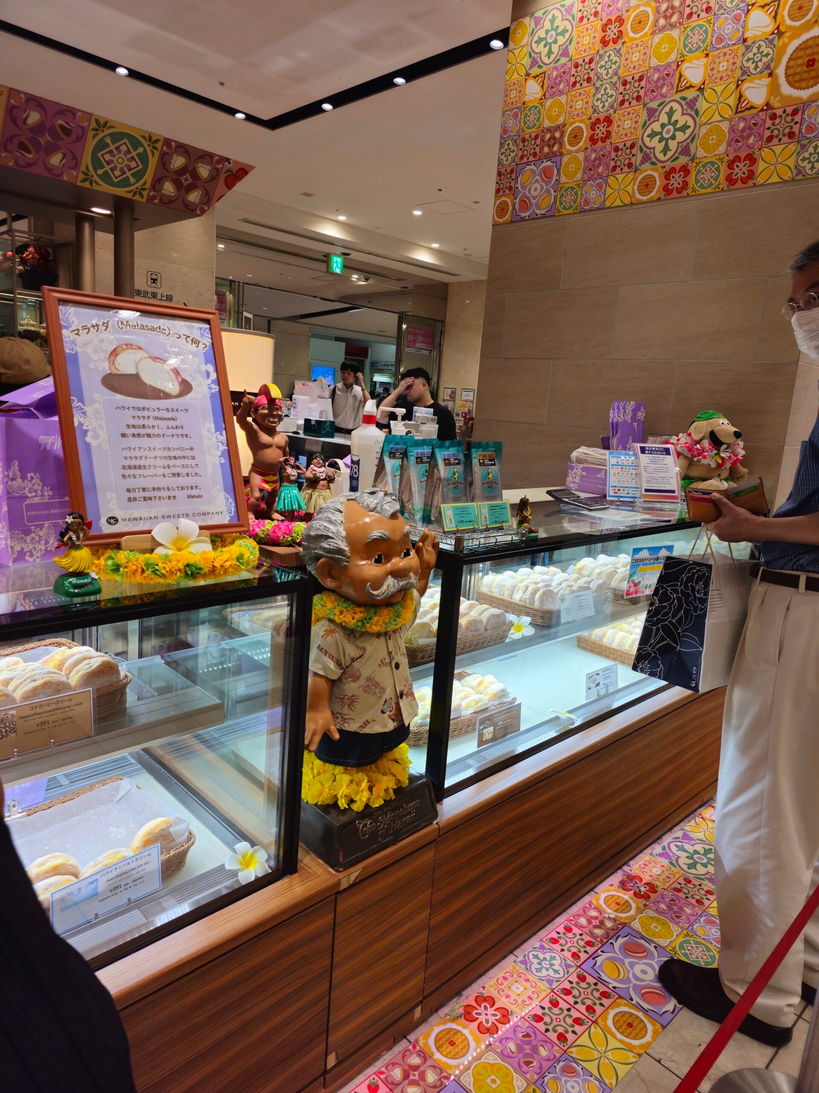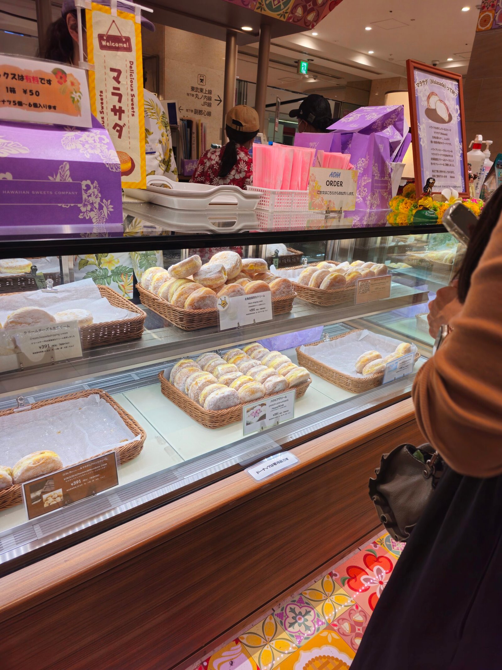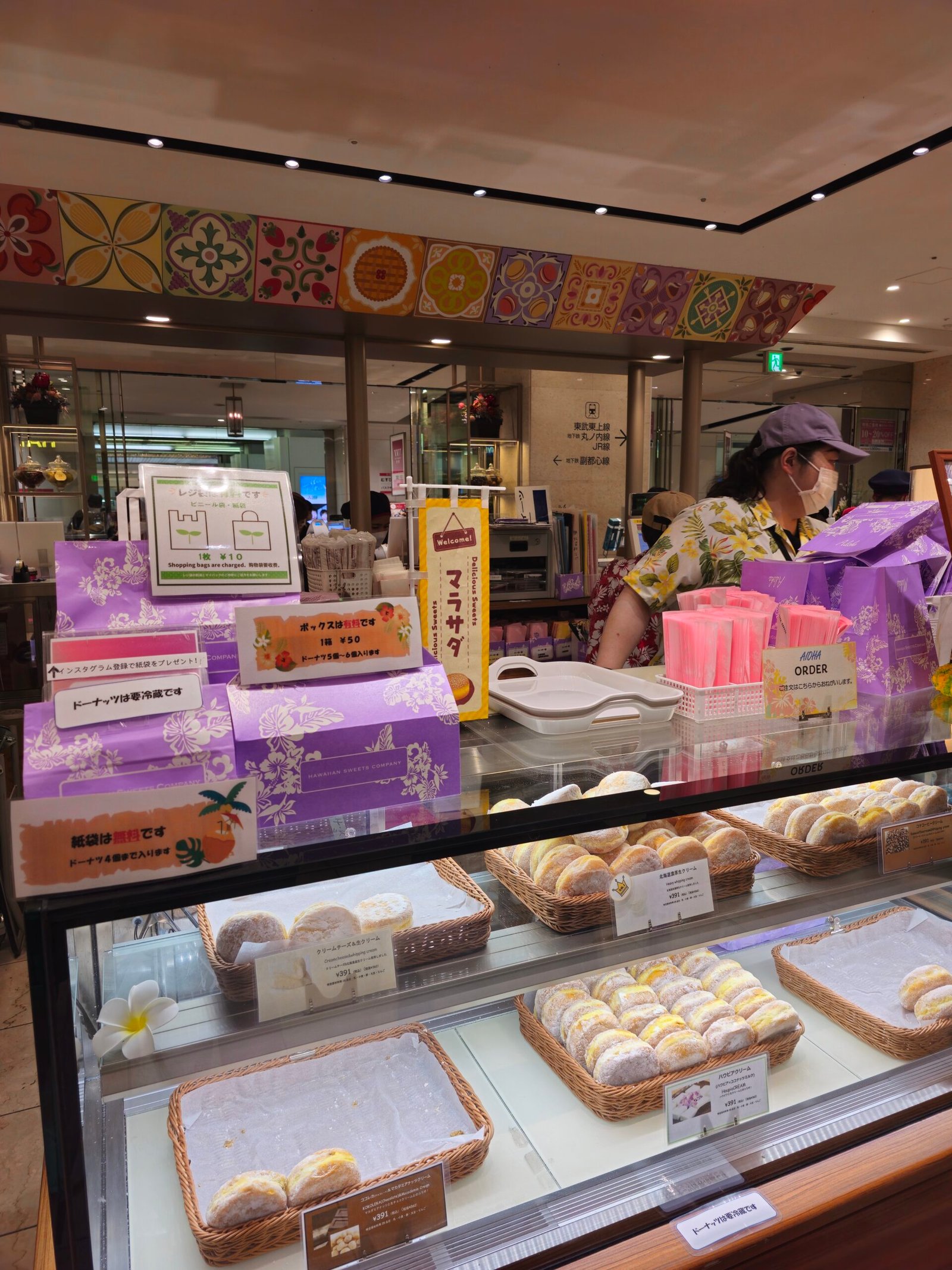We found a taste of paradise at Hawaiian Sweets Company Tokyo Honten in Nishi-Ikebukuro, conveniently located in the Tobu Ikebukuro B1 event space. Out of all the tempting foods/drinks the food area has to offer, we decided to try this delicious pastry that was flaky and delicious with a slight cream inside.